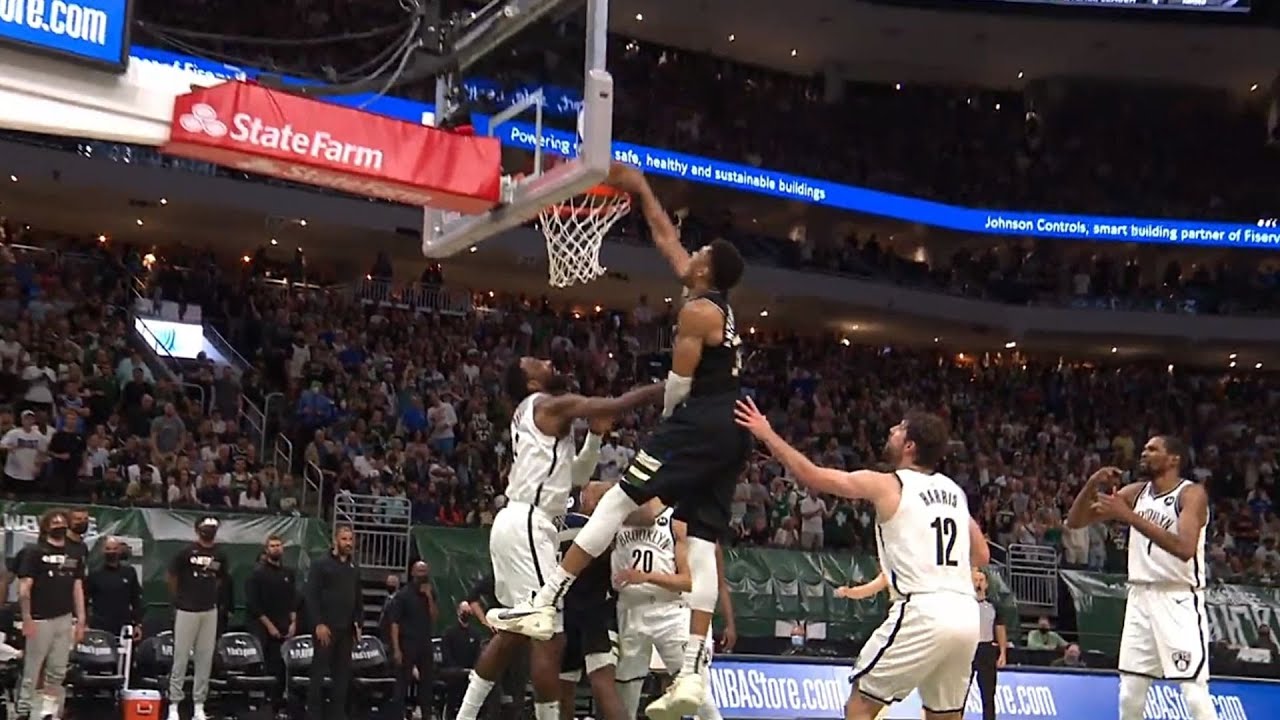 Giannis Antetokounmpo Takes His Frustration Out On Jeff Green With Angry Dunk Nets Vs Bucks Game 6 Youtube
