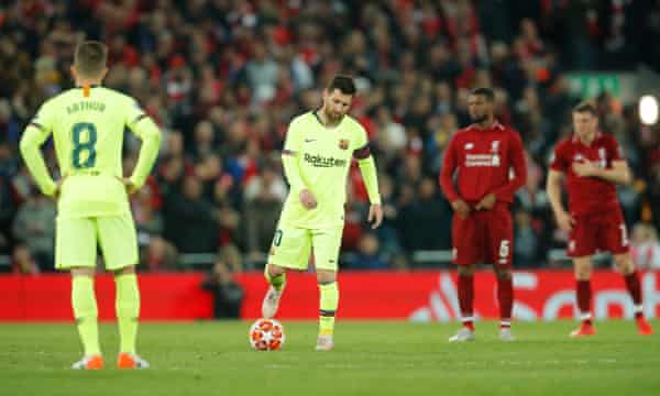 Lionel Messi double stuns Reds in Champions League semi-final. Last updated on 1 May 2019 1 May 2019. 905 James Milner Liverpool wins a free kick on the left wing.